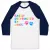 features raglan 3/4 sleeves and a modern fit that is perfect for a day