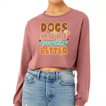 Dogs Make Everything Better Cropped Long Sleeve Sweatshirt – Dog Person Women’s Crop Top – Life With Pets Long Sleeves Pullover