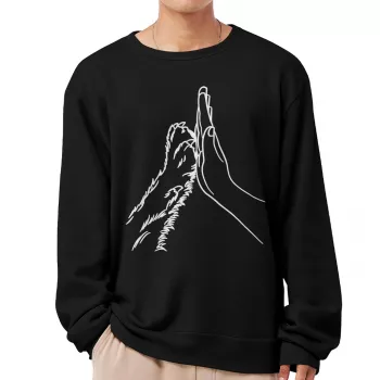Human Hand and Paw Sweatshirt – Gift for Dog Owner Crewneck Sweatshirt – Cute Dog Paw Unisex Sweatshirt
