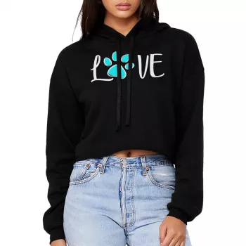 Love Dog Paw Women’s Cropped Hoodie – Cute Animal Design Hooded Sweatshirt – Pet Art Super Crop Top Hoodies