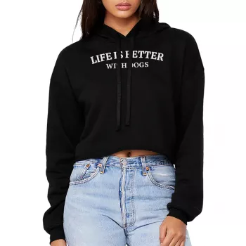 Life Is Better With Dogs Women’s Cropped Hoodie – Love My Pet Hooded Sweatshirt – Proud Dog Parent Super Crop Top Hoodies