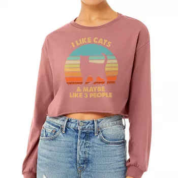 I Like Cats And Maybe Like 3 People Cropped Long Sleeve Sweatshirt – Cat Quote Women’s Crop Top – Cat Lover Long Sleeves Pullover