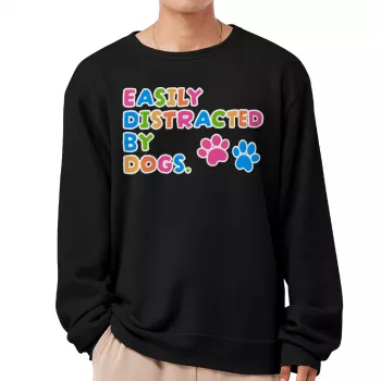 Easily Distracted By Dogs Sweatshirt – Funny Dog Lover Crewneck Sweatshirt – Dog Obsessed Gift Unisex Sweatshirt