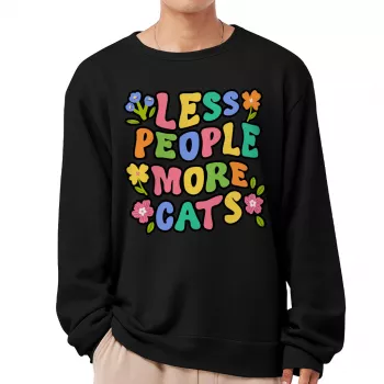 Less People More Cats Sweatshirt – Retro Boho Crewneck Sweatshirt – Cat Funny Saying Unisex Sweatshirt