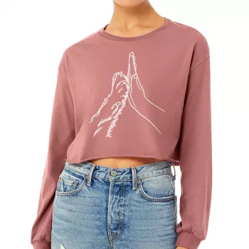 Human Hand and Paw Cropped Long Sleeve Sweatshirt – Cute Dog Paw Women’s Crop Top – Gift for Dog Owner Long Sleeves Pullover
