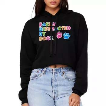 Easily Distracted By Dogs Women’s Cropped Hoodie – Funny Dog Lover Hooded Sweatshirt – Dog Obsessed Gift Super Crop Top Hoodies