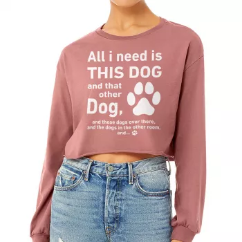 All I Need Is This Dog And That Other Dog Cropped Long Sleeve Sweatshirt – Funny Pet Quote Women’s Crop Top – Animal Lover Long Sleeves Pullover