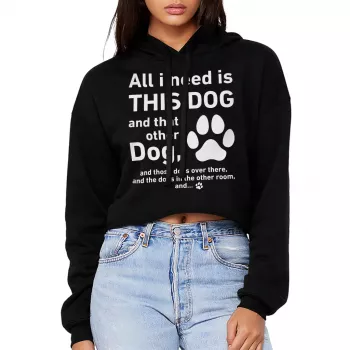 All I Need Is This Dog And That Other Dog Women’s Cropped Hoodie – Funny Pet Quote Hooded Sweatshirt – Animal Lover Super Crop Top Hoodies