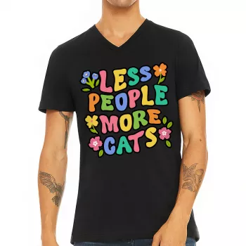 Less People More Cats V-Neck T-Shirt – Cat Funny Saying Basic T-Shirt – Retro Boho Tee