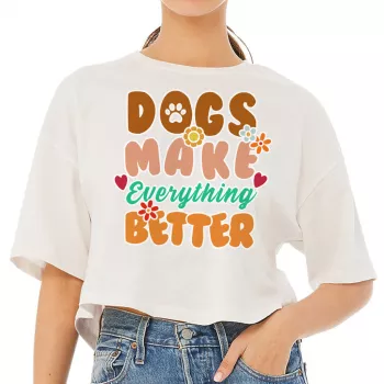 Dogs Make Everything Better Cropped T-Shirt – Life With Pets Trendy Tee – Dog Person Women’s Basic T-Shirt