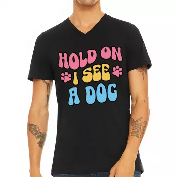 Hold On I See A Dog V-Neck T-Shirt – Animal Lover Gift Basic T-Shirt – Groovy Design Tee