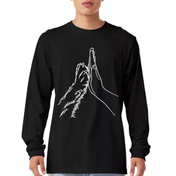 Human Hand and Paw Long Sleeve T-Shirt – Cute Dog Paw T-Shirt – Gift for Dog Owner Basic Tee