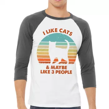 I Like Cats And Maybe Like 3 People Baseball T-Shirt – Cat Quote 3/4 Sleeve – Cat Lover Raglan Jersey Shirt