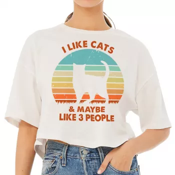 I Like Cats And Maybe Like 3 People Cropped T-Shirt – Cat Lover Trendy Tee – Cat Quote Women’s Basic T-Shirt