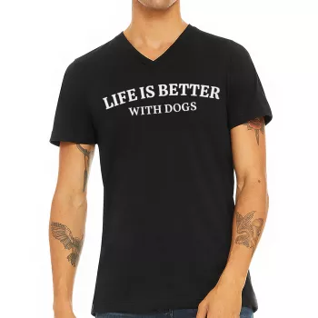 Life Is Better With Dogs V-Neck T-Shirt – Love My Pet Basic T-Shirt – Proud Dog Parent Tee