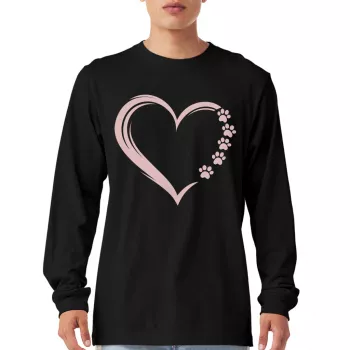Heart Paw Long Sleeve T-Shirt – Pet Love T-Shirt – Cute Paws Print Basic Tee
