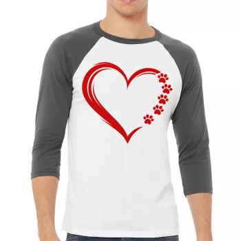 Heart Paw Baseball T-Shirt – Cute Paws Print 3/4 Sleeve – Pet Love Raglan Jersey Shirt