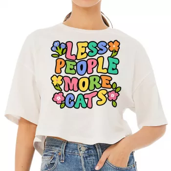 Less People More Cats Cropped T-Shirt – Cat Funny Saying Trendy Tee – Retro Boho Women’s Basic T-Shirt