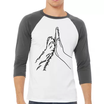 Human Hand and Paw Baseball T-Shirt – Gift for Dog Owner 3/4 Sleeve – Cute Dog Paw Raglan Jersey Shirt